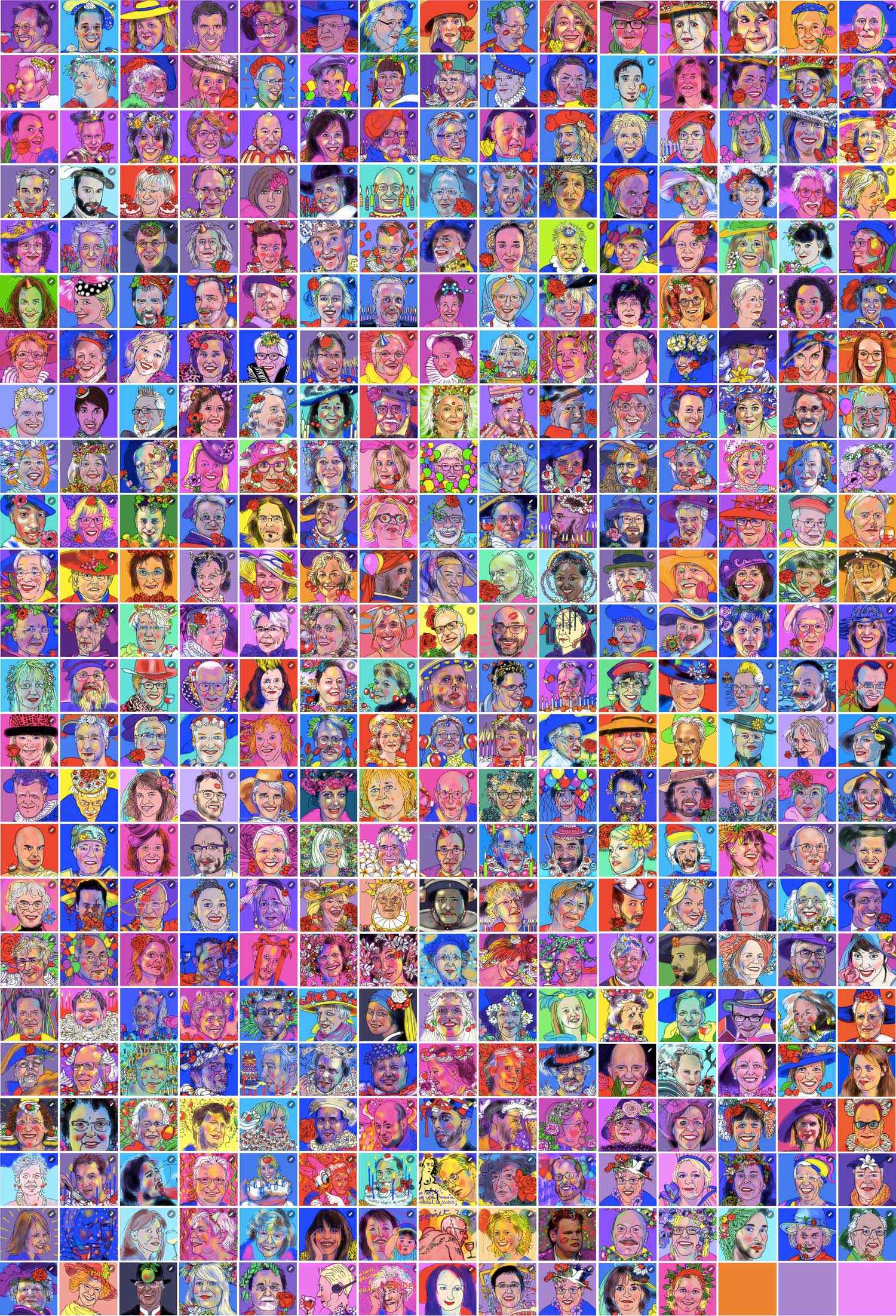 Periode 2014-2017. Voor de verjaardag van mijn facebook-vrienden tekende ik een feestportret op de Ipad als afleiding in mijn periode van rouw. Alle portretten zijn getekend in hoge resolutie. Ook op mijn facebook-pagina zijn de portretten nog te zien.